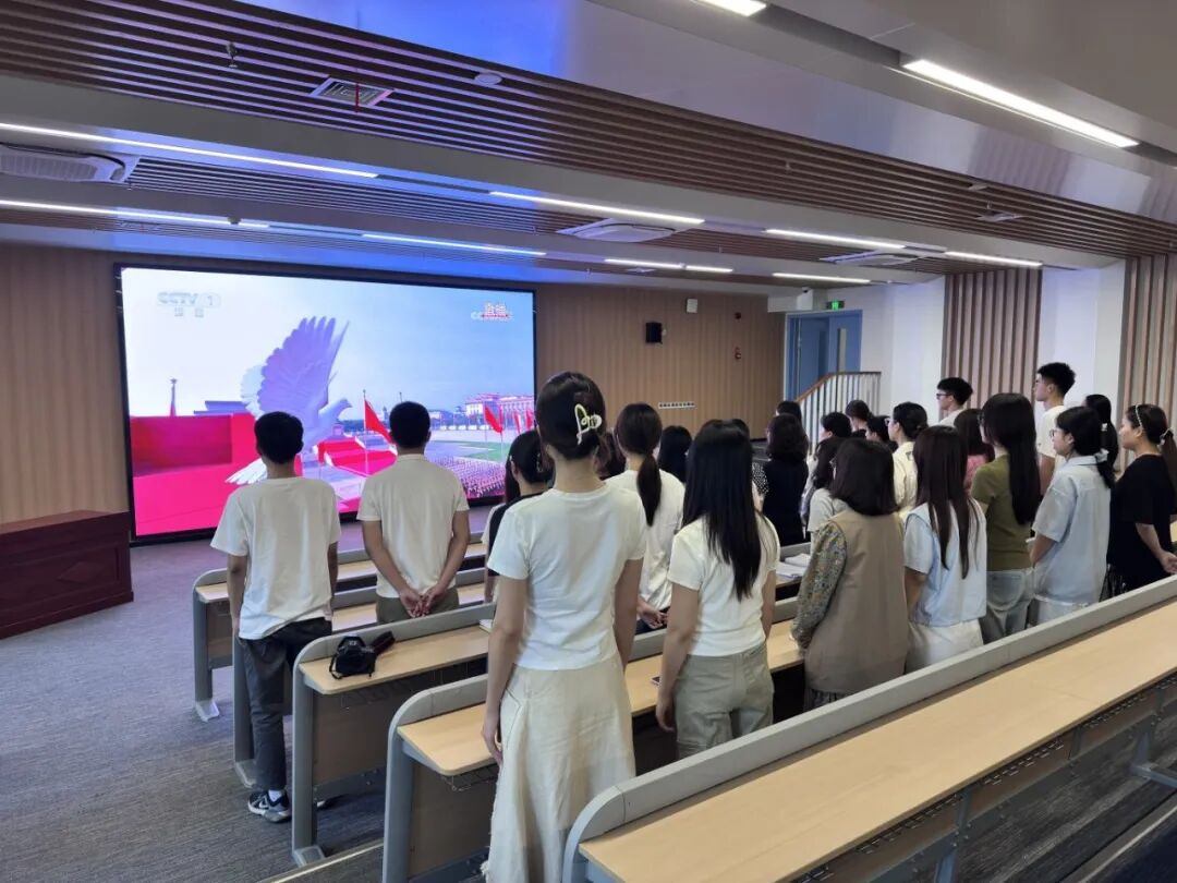 师生们全程认真观看阅兵仪式,凝神聆听重要讲话,沉浸式体验这场彰显国家意志与民族精神的盛典。通过镜头,大家直观感受到我国国防和军队现代化建设的辉煌成就,深刻认识到抗战胜利的伟大历史意义与和平的来之不易。