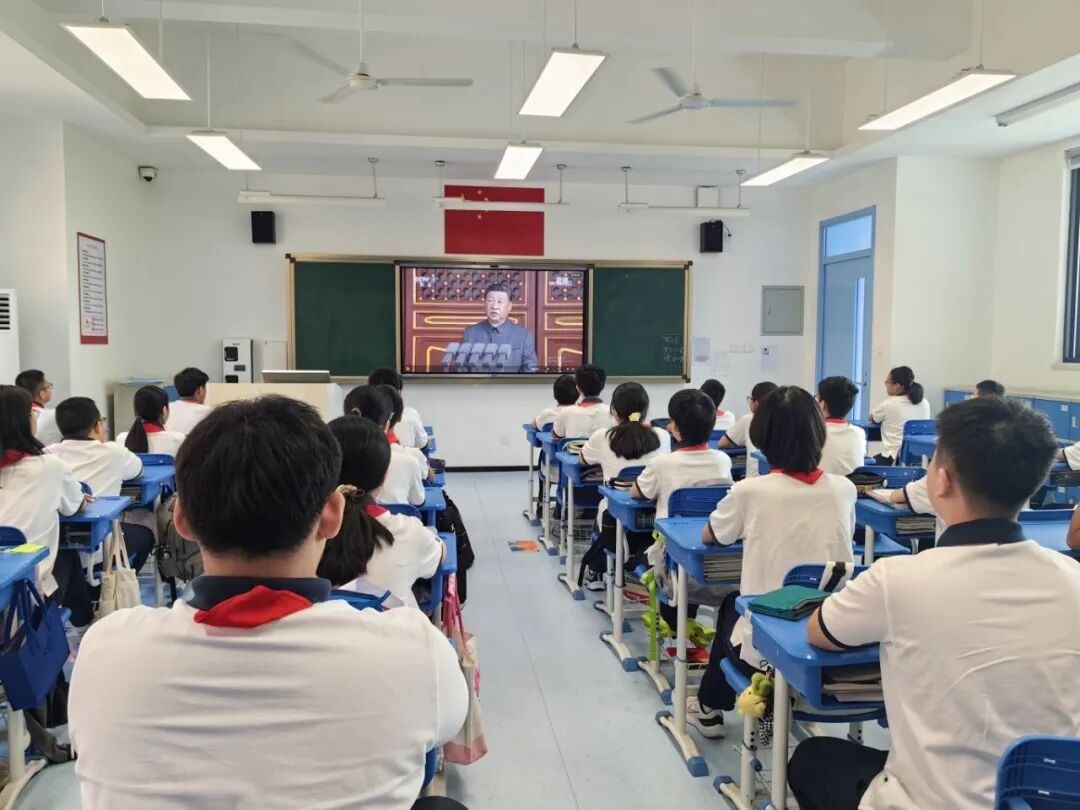 9月3日上午,纪念中国人民抗日战争暨世界反法西斯战争胜利80周年大会在北京天安门广场隆重举行。嘉一实验初中组织全体师生收看了大会实况直播,共同见证这一庄严历史时刻,感受强国强军的时代风采。
