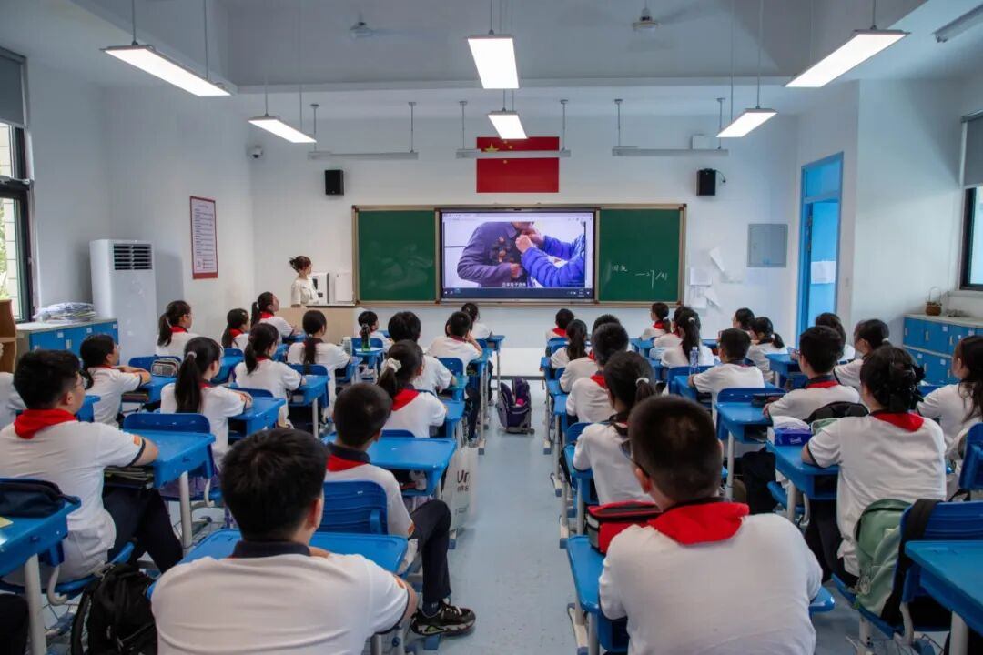 2025年9月1日上午,上海市嘉定区第一中学及嘉一实验初中隆重举行“弘扬伟大抗战精神,勇担强国复兴使命”2025学年“开学第一课”主题教育活动。今年适逢中国人民抗日战争暨世界反法西斯战争胜利80周年,学校特邀抗美援朝老兵、全军英模代表操胜、原海军上海基地后勤部副政委梅明亮、原海军上海基地副参谋长鲍奇将军之子鲍一江走进校园。学校通过主题访谈、嘉宾分享、互动提问等多种形式,引导师生铭记历史、缅怀先烈,从伟大抗战精神中汲取奋进力量。