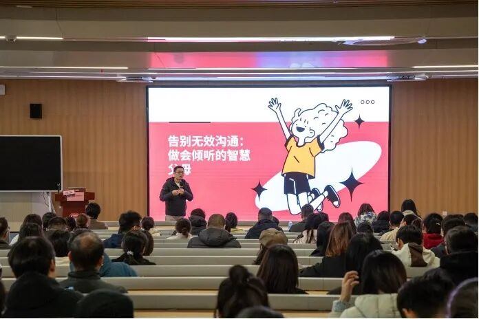 学校邀请到心理咨询师徐恒为家长举办“告别无效沟通:做会倾听的智慧父母”主题讲座,他指出亲子沟通矛盾的核心在于孩子情感需求被忽视,强调“听见情绪”的重要性,介绍了情绪标签法、三分钟情绪镜射法、开放式提问等实用倾听技巧,以及情绪管理和冲突修复方法,建议通过日常家庭互动将倾听仪式化,以提升亲子信任、促进家校协同,帮助孩子平稳度过青春期。