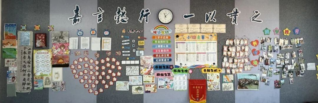 九年级墙报突出“态度、细节、目标、行动”四大主题。同学们以“踔厉奋发,笃行不怠”自励,通过“只争朝夕,不负韶华”表达珍惜时光、奋发向上的决心。墙报设计结构清晰、图文并茂,体现了九年级学生逐步树立目标、注重过程、积极行动的精神风貌。