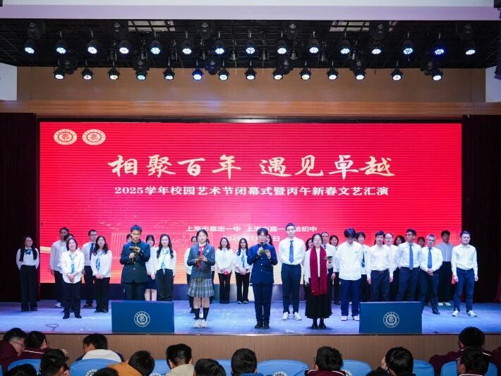 冬阳和煦,艺韵流芳。1月29日,嘉定一中及嘉一实验初中“相聚百年,遇见卓越”2025学年校园艺术节闭幕式暨丙午新春文艺汇演在闻韶厅举行。全体师生与家长代表齐聚一堂,共享这场融艺术之美、青春之力、文化之魂与时代之韵于一体的迎新汇演,共同见证百年嘉一的文化积淀与青春风采的璀璨绽放。本次汇演由李轶丹老师与陈明哲、张灏霖、李琬玉同学共同主持。